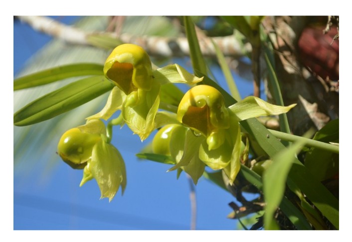 In contrast, female flowers lack this trigger mechanism and instead produce a sweet nectar, attracting pollinators to land on the lip. While the insect is feeding, it comes into contact with the pollens previously attached to its body and transfers them to the recipient stigma, facilitating fertilization.