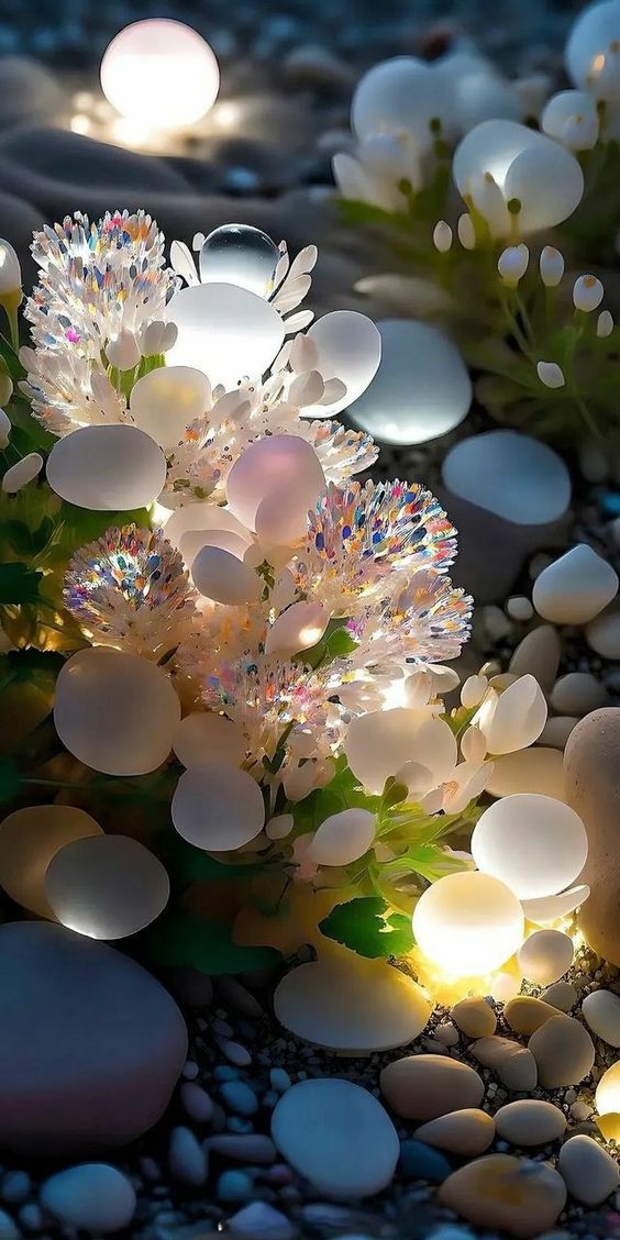 Among these rugged rocks, hardy daisies sway gently in the salty breeze, displaying their cheerful white petals like stars scattered across the rock.